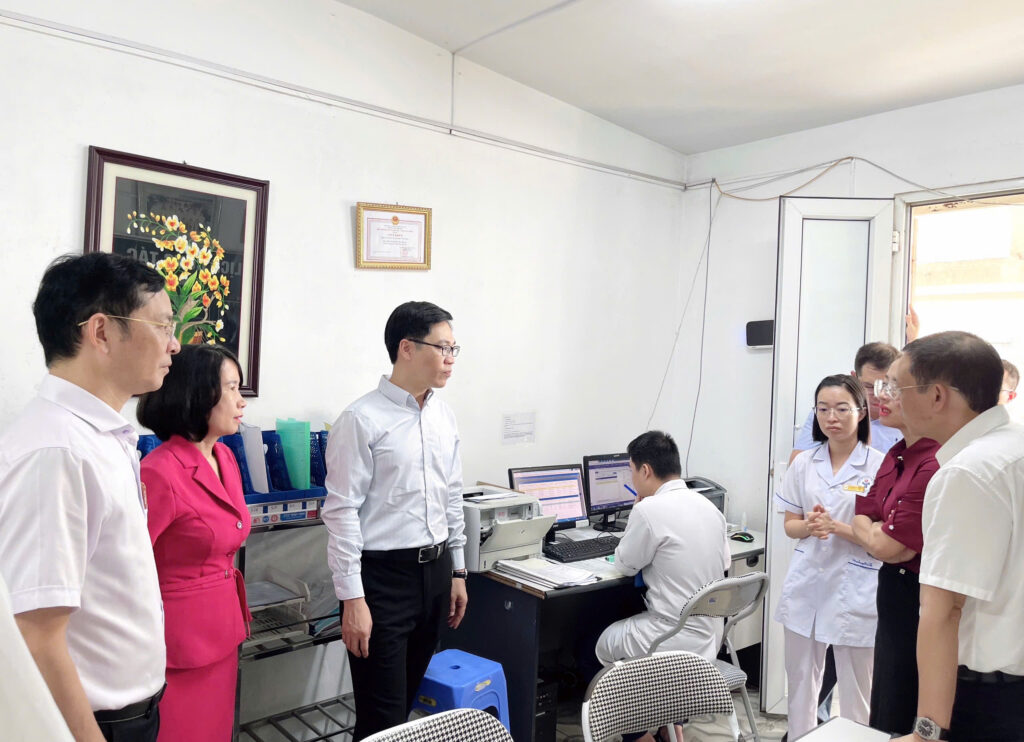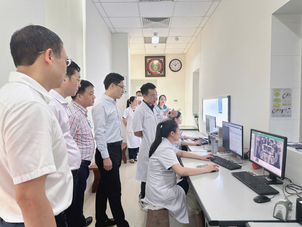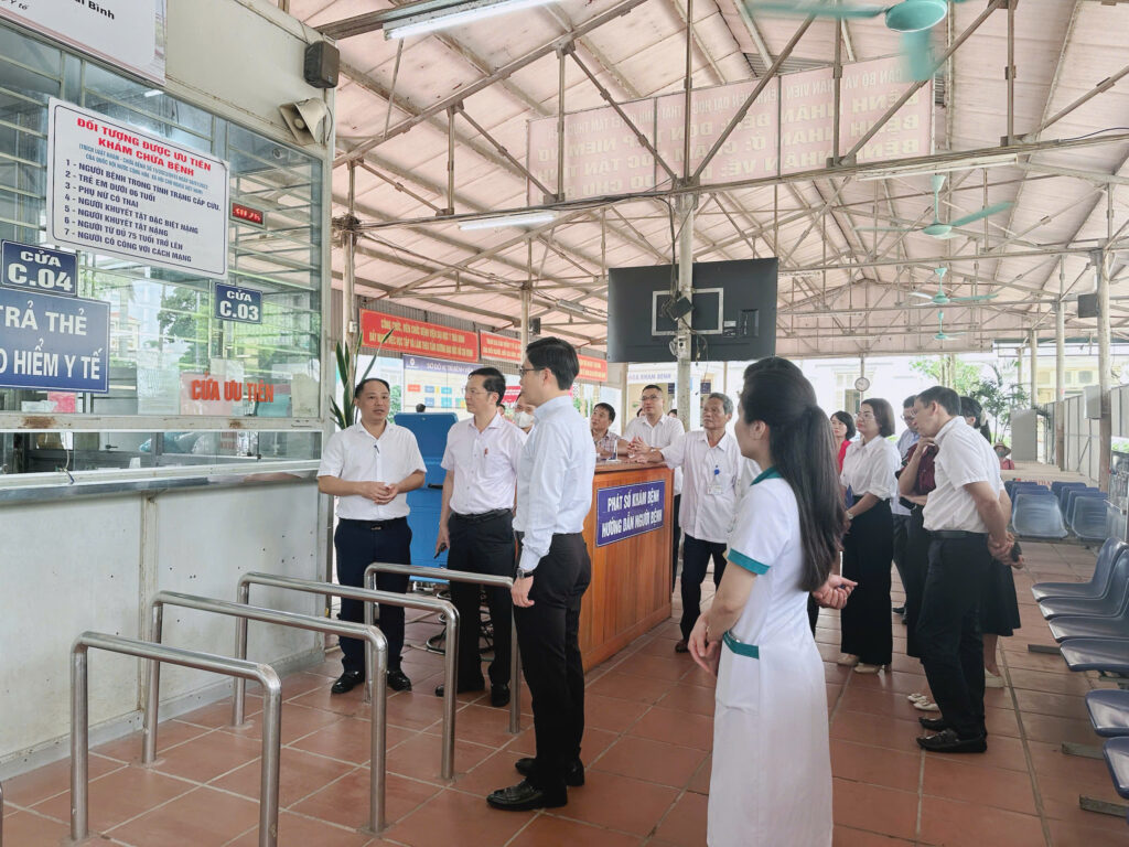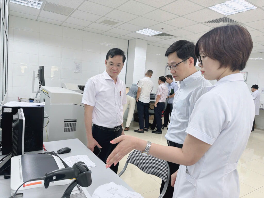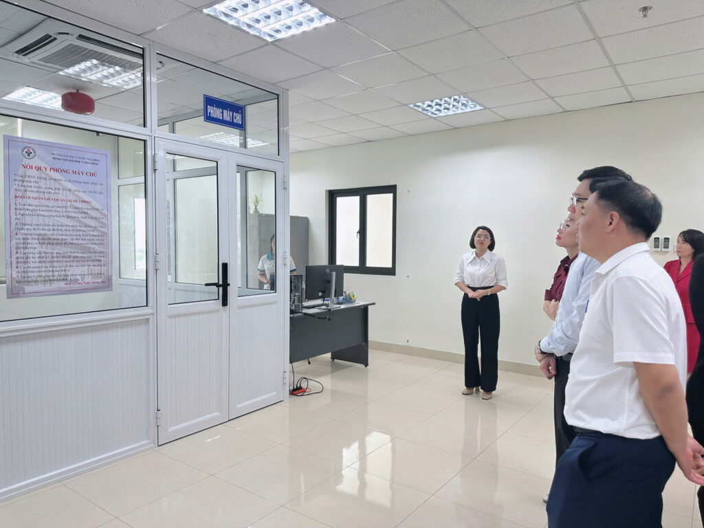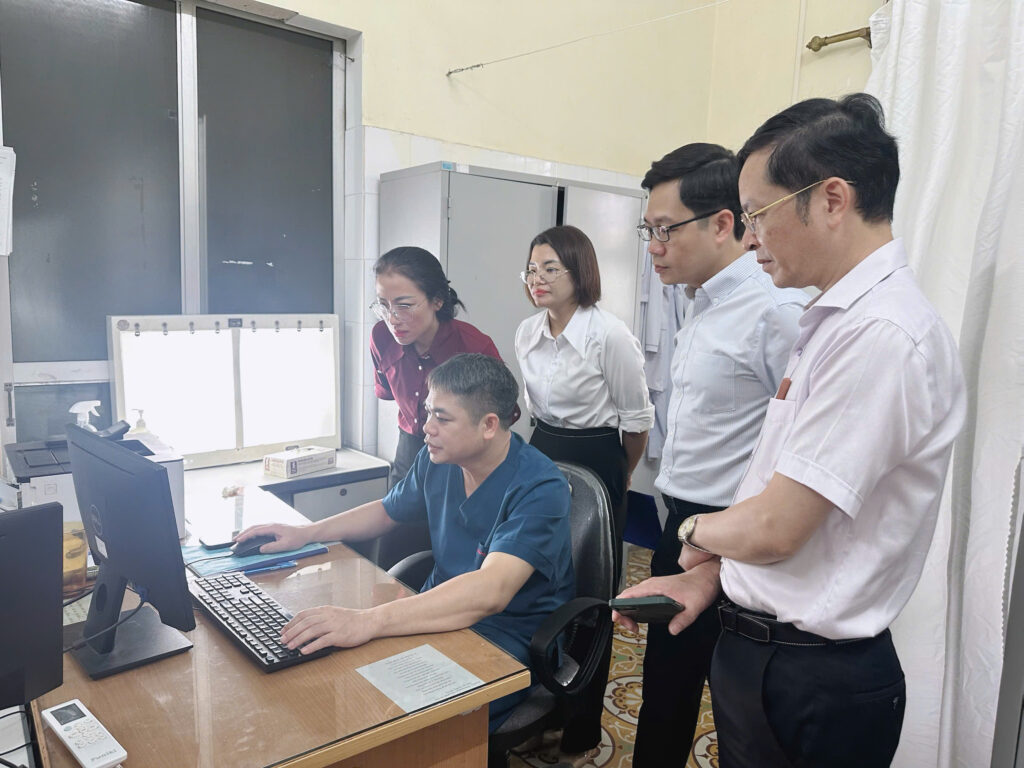 Sau khi nghe báo cáo, Hội đồng đã trực tiếp khảo sát tại một số đơn vị: Khu vực quầy tiếp đón và Kiosk đăng ký khám, chữa bệnh, phòng khám ngoại trú, khoa Chẩn đoán hình ảnh, khoa Xét nghiệm, khoa điều trị nội trú và phòng Máy chủ. Qua đó thực hiện đánh giá các tiêu chí Bệnh án điện tử, ứng dụng Công nghệ thông tin của Bệnh viện theo Thông tư số 13/2025/TT-BYT và Công văn số 365/TTYQG-GPQLCL của Bộ Y tế.