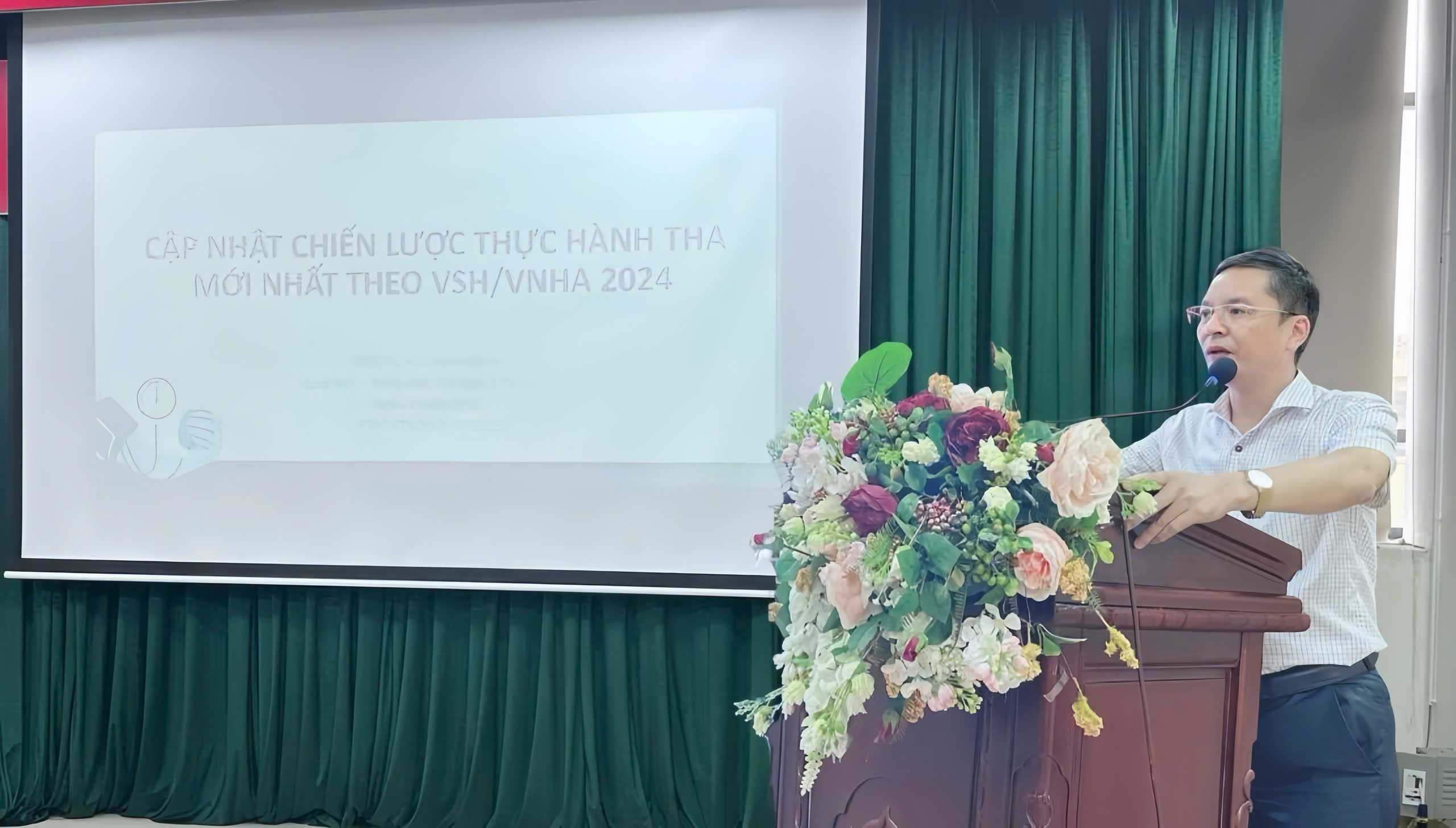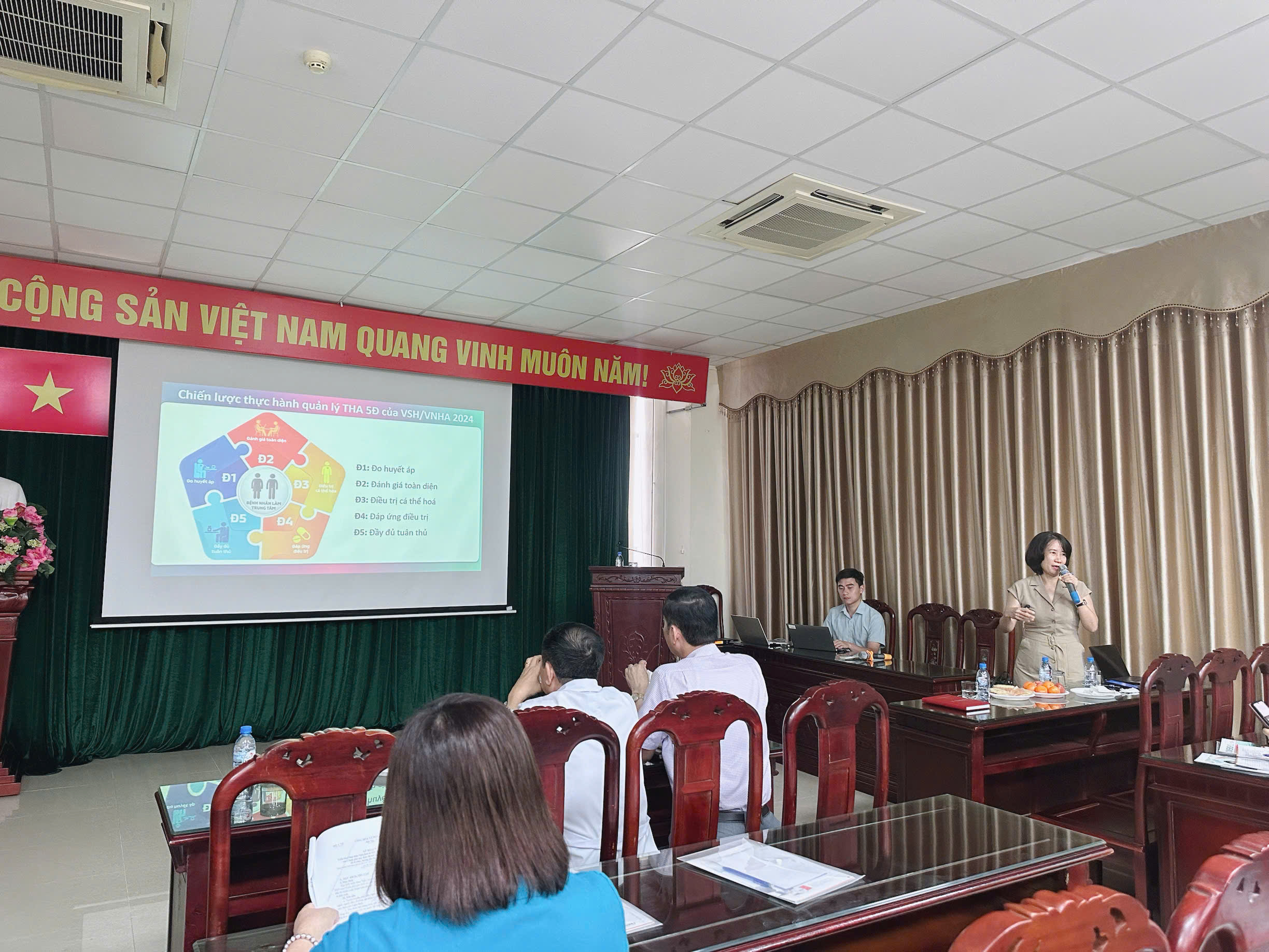 Điểm nhấn của Hội thảo là phần trình bày chuyên sâu của TTƯT.PGS.TS Vũ Thanh Bình – Trưởng Bộ môn Nội Trường Đại học Y Dược Thái Bình, Phụ trách khoa Nội Bệnh viện Đại học Y Thái Bình. Với kinh nghiệm giảng dạy và thực tiễn lâm sàng phong phú, TTƯT.PGS.TS Vũ Thanh Bình đã tổng quan những điểm mới đột phá trong khuyến cáo 2024 về điều trị tăng huyết áp, đặc biệt tập trung vào chiến lược 5Đ toàn diện: