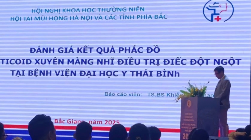 Bên cạnh đó, báo cáo “Đánh giá kết quả phác đồ tiêm Corticoid xuyên màng nhĩ điều trị điếc đột ngột tại Bệnh viện Đại học Y Thái Bình” đã khẳng định hiệu quả của một kỹ thuật điều trị cứu vãn quan trọng. Tiêm Corticoid xuyên màng nhĩ đã trở thành phác đồ thường quy tại Bệnh viện Đại học Y Thái Bình trong nhiều năm qua, mang lại hy vọng cho người bệnh bị điếc đột ngột, giúp họ giảm ù tai, cải thiện đáng kể sức nghe và nâng cao chất lượng cuộc sống.