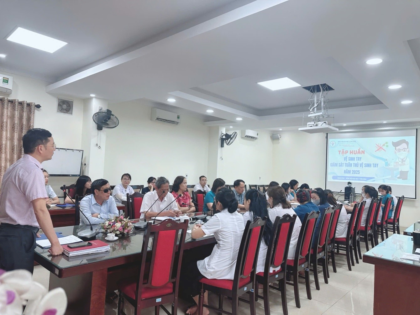 Trong khuôn khổ các hoạt động hưởng ứng Tháng vệ sinh tay, chiều ngày 13/5/2025, Bệnh viện Đại học Y Thái Bình đã tổ chức lớp “Tập huấn vệ sinh tay và giám sát tuân thủ vệ sinh tay năm 2025” dành cho các bác sĩ, điều dưỡng và nhân viên mạng lưới kiểm soát nhiễm khuẩn đang công tác tại Bệnh viện nhằm nâng cao nhận thức và thay đổi hành vi của nhân viên y tế về tầm quan trọng của vệ sinh tay.