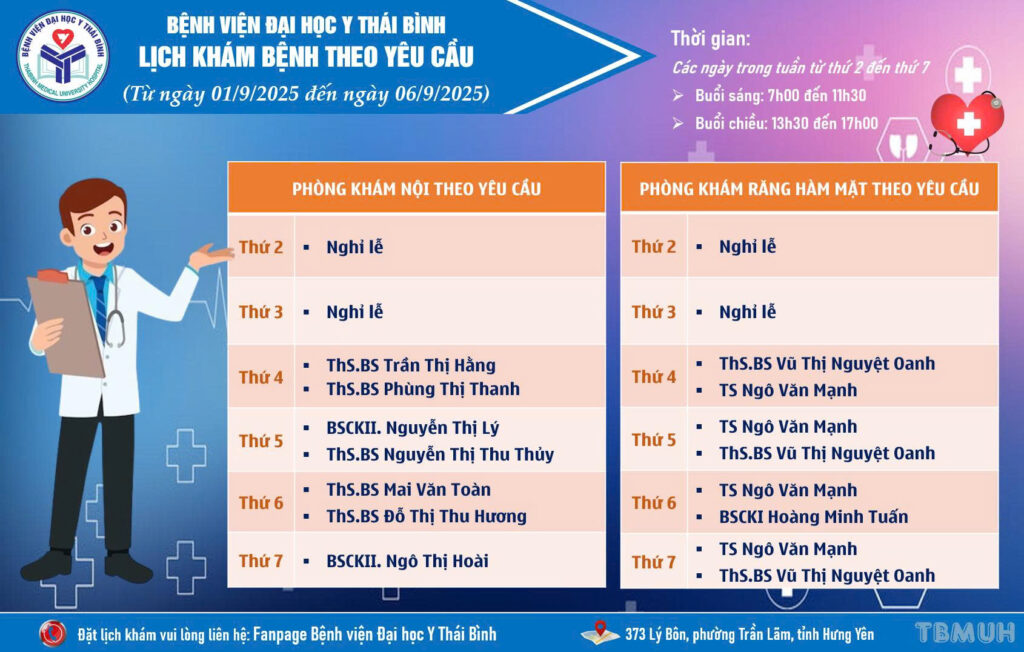 - LỊCH KHÁM BỆNH THEO YÊU CẦU (Từ ngày 08/9/2025 đến ngày 13/9/2025)